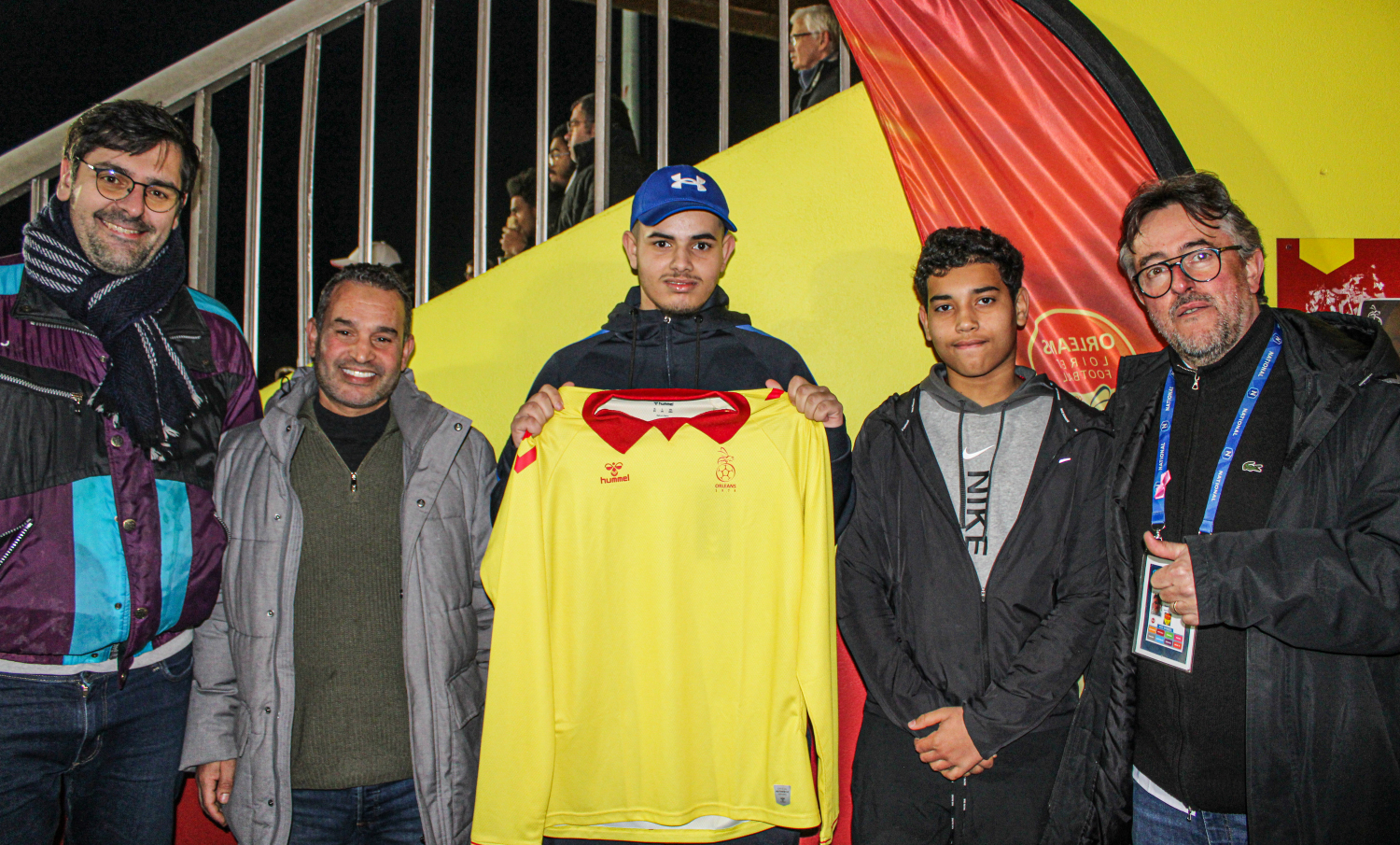 Pour cette journée anniversaire au Stade de la Source, un jeune du DAME PEP Orléans (ex IME La Source) a été tiré au sort pour assister à cette journée qui restera gravée dans l’histoire du club orléanais. L’heureux gagnant, Mohamed, a ainsi eu la chance d’assister à l’affiche du National entre nos Guêpes et les Rouennais, en compagnie de son frère, Omar, et de son père, Abdellah. Et à la mi-temps, un maillot spécial 50 ans, conçu pour l’occasion en édition limitée, a été remis au jeune Mohamed en tribune par l’Association Foot en Cœur, en présence de Yann Chaillou de Les PEP 45.